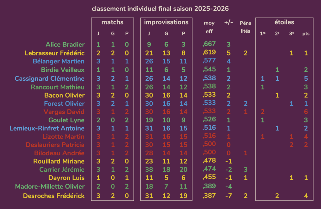 La Ligue d’improvisation musicale de Québec présente sa saison 2025-2026. L’événement phare est sa 21e saison de 8 matchs à l’Impérial Bell, un lundi par mois, d’octobre à mai. Une saison durant laquelle quatre équipes de quatre musiciennes et musiciens s’affrontent tour à tour jusqu’au couronnement de l’équipe championne.